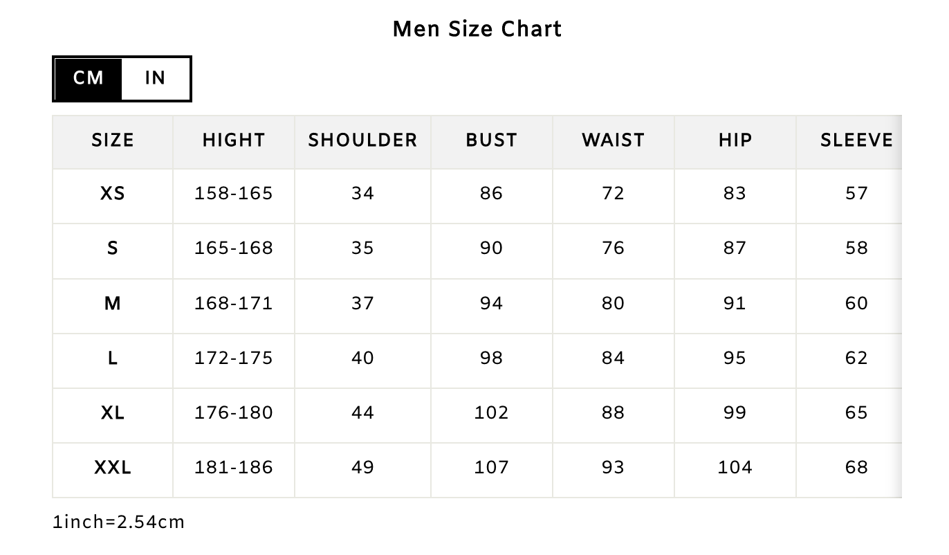 Please check the size CM / INCH in your own clothes.